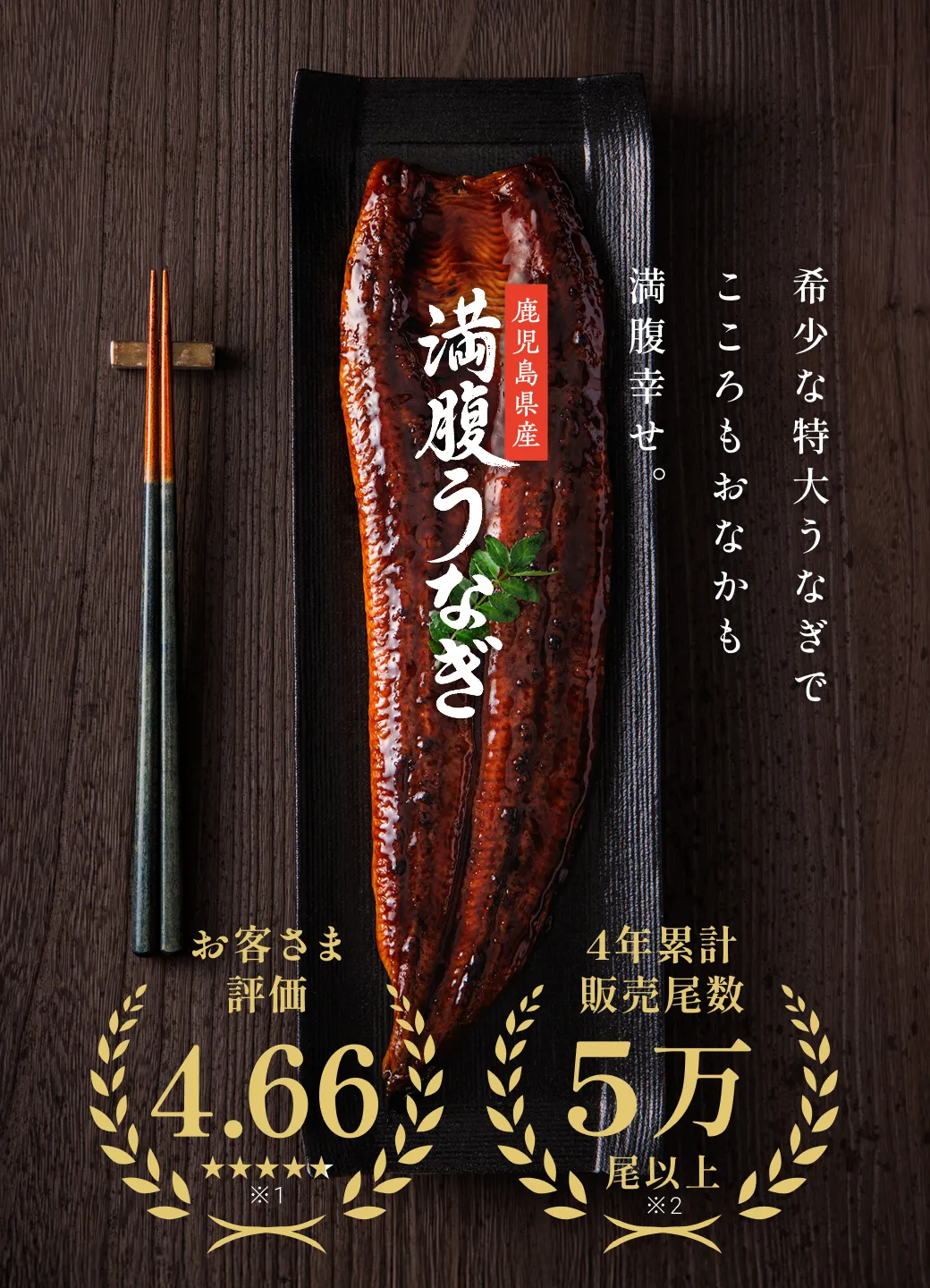 みさらの鹿児島県産満腹うなぎは、うなぎの生産量が全国第一位である鹿児島県産のうなぎの中から良質な大隅産のうなぎのみを厳選。