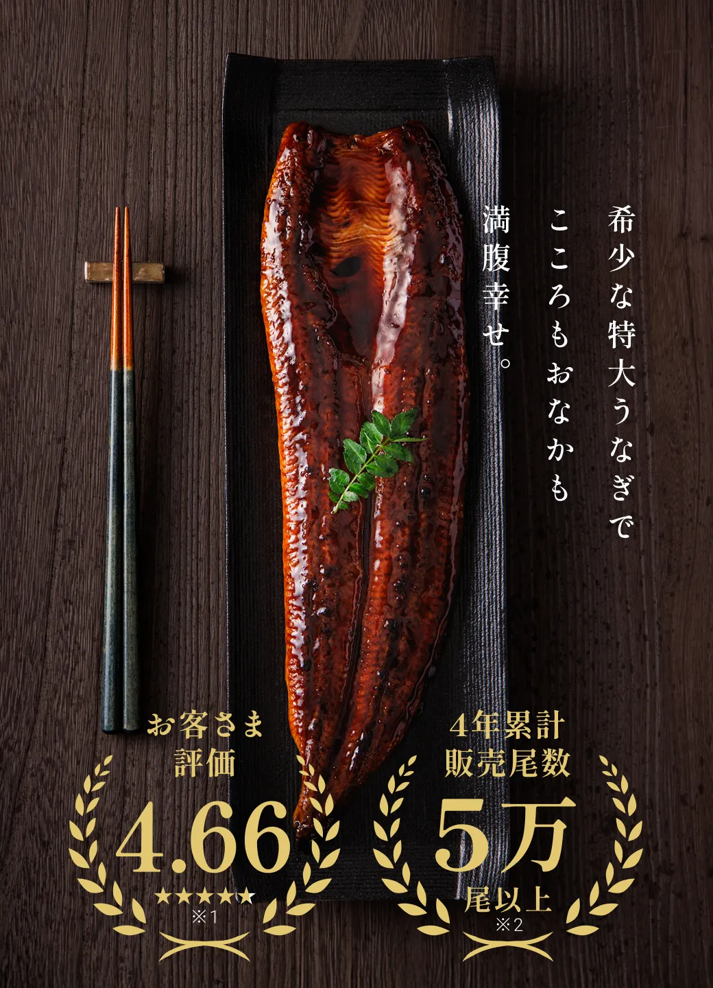 特大うなぎは大きさもさることながら、食べてみてびっくり!臭みもなく肉厚でうなぎの美味しさを十分に感じられました。これが冷凍とは驚きです。食べ物の安全性が重要視される昨今、国産のうなぎを手軽にこの味わいで食べられるのは素晴らしいと思います。